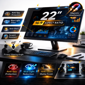 • 22 Inch Magnetic Computer Privacy Screen Filter | 2in1 – Anti Blue Light Eye Protection with Anti Spy Desktop Security Private Filter | 2H–3H Surface Hardness