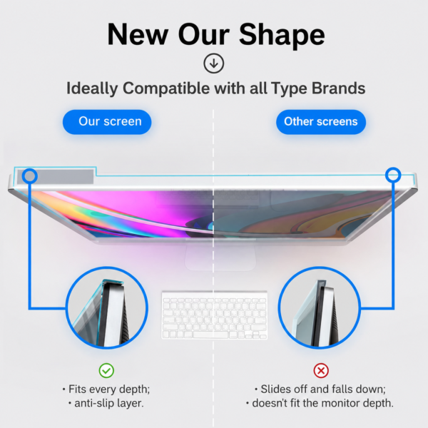 | Key Benefits | Helps reduce harmful blue light exposure Anti-glare matte finish minimizes reflections Maintains sharp picture quality with ultra-clear optics Durable 2mm acrylic panel for long-term use Suitable for modern flat-panel Monitors |